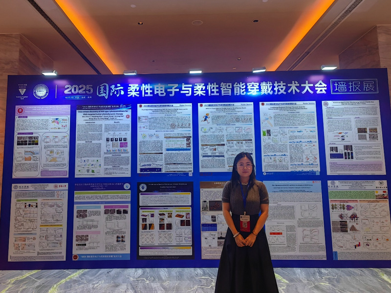 近日,电子工程学院韩悦博士应邀在“2025国际柔性电子与柔性智能穿戴技术大会”上作题为《基于CsPbBr3纳米晶的高性能稳定光电探测器》的学术报告。