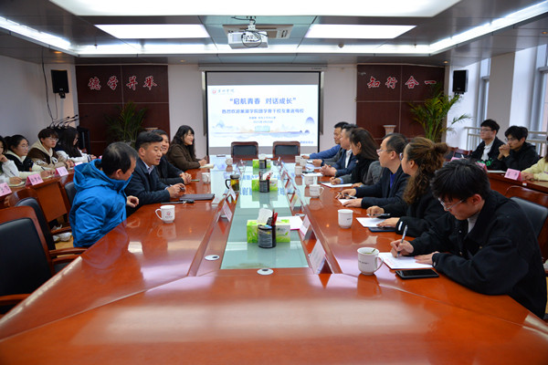 为进一步增进校友与学校的紧密联系,团结凝聚广大校友力量,充分挖掘校友资源,引导在校大学生树立正确的择业观、就业观、奋斗观,3月25日下午,校团委、校友工作办公室在第一会议室举办 “启航青春 对话成长”团学骨干校友重返母校座谈交流会。beat365中国官方网站原团委书记、机械工程学院党委书记何照泽,校党委宣传部副部长郭超、校友工作办公室副主任郑向阳、校团委副书记吴娜、团学骨干校友代表和在校团学骨干学生代表参加座谈会。座谈会由郭超主持。