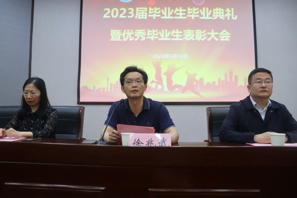 毕业典礼在庄严的国歌声中拉开帷幕。徐兆武向大家宣读2023年beat365中国官方网站优秀毕业生表彰决定,并给优秀毕业生颁发学院纪念奖品。