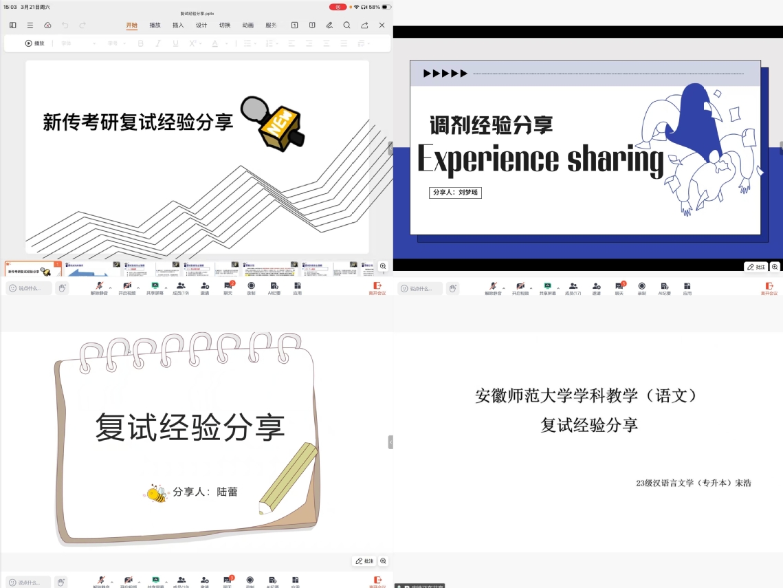 本次分享会紧密围绕人文类专业的复试考核与调剂技巧展开,邀请了来自不同院校、不同专业的学长学姐,结合新闻传播、学科语文等方向学子的实际需求,进行针对性经验分享。