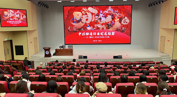 活动首日,系列专题讲座在崇学楼报告厅拉开帷幕。江南大学博士生导师童永生教授以《中国动漫行业发展趋势——以〈哪吒〉系列及饺子导演为例》为题,通过剖析典型IP个案,深入解读了产业链升级、跨媒介协同与国际传播的成功路径。